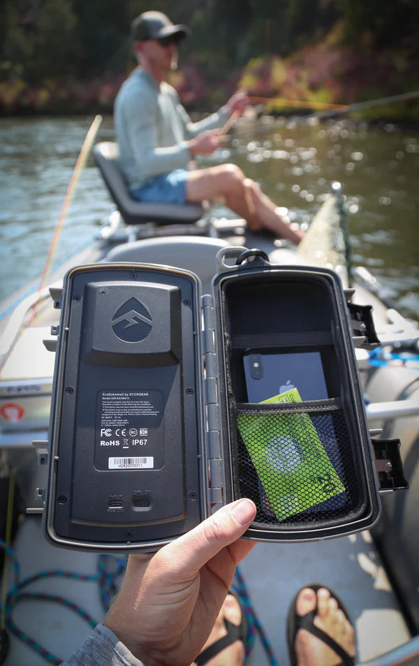 A fan favorite is finally back and in a larger format to fit today's phones. IPX7 waterproof Bluetooth® speaker with compact, rugged styling & space for your stuff! Featuring a booming 15W speaker, the EcoExtreme has incredible sound in a portable package, and is still tough enough for every outdoor adventure. Includes an EcoTalk button for Google and Siri voice activation.